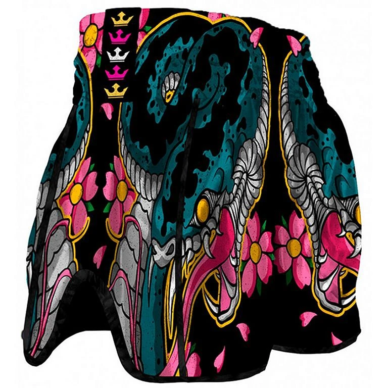 Buddha Retro Cobra Muay Thai Shorts Nero-Rosa