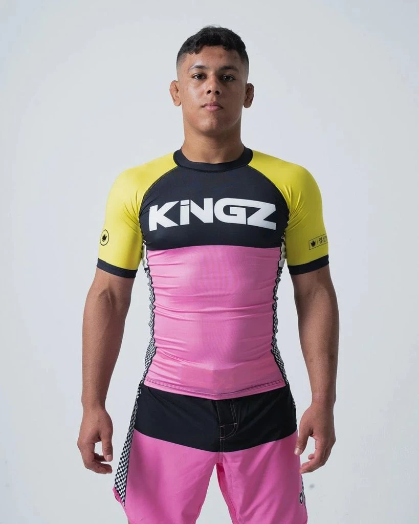 Kingz Retro S/S Rashguard Nero-Rosa
