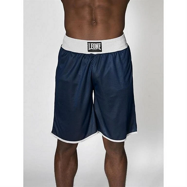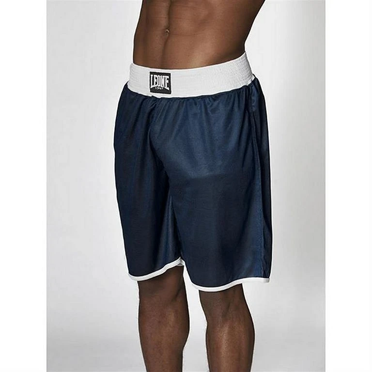 Pantaloni da boxe Leone reversibili realizzati in tessuto a rete nei colori blu e rosso.