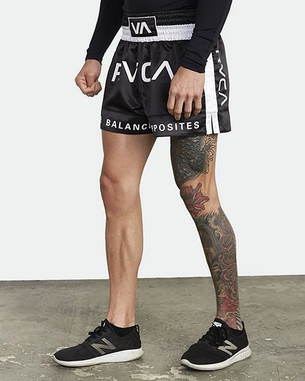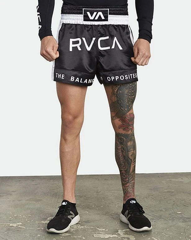 Pantaloni RVCA per muay thai che hanno una cintura elastica e rifinita in 8 cm di altezza.